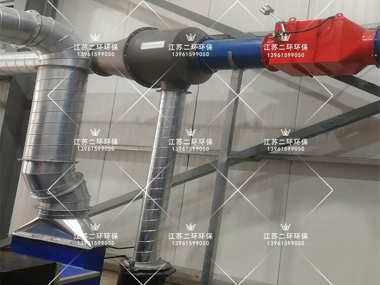 2、電焊、金屬切割打磨的火花煙塵,在引風機抽風的動力作用下,進入抽風管道。