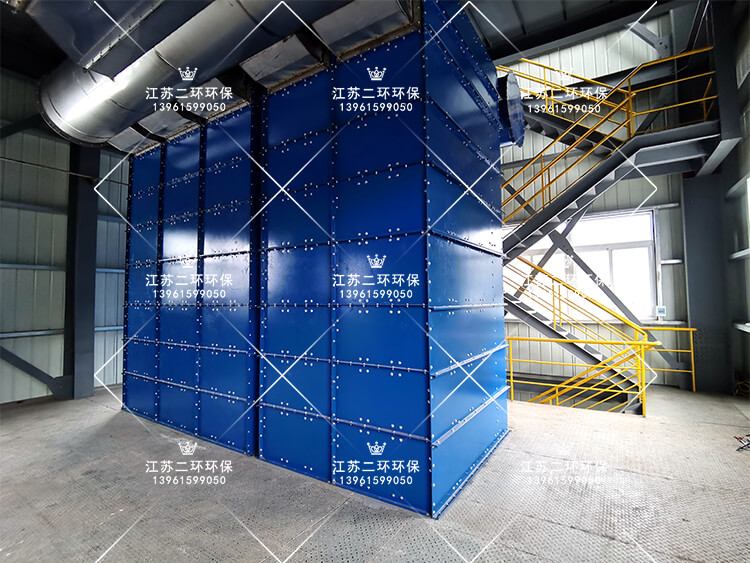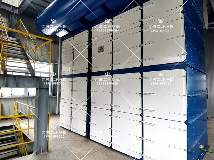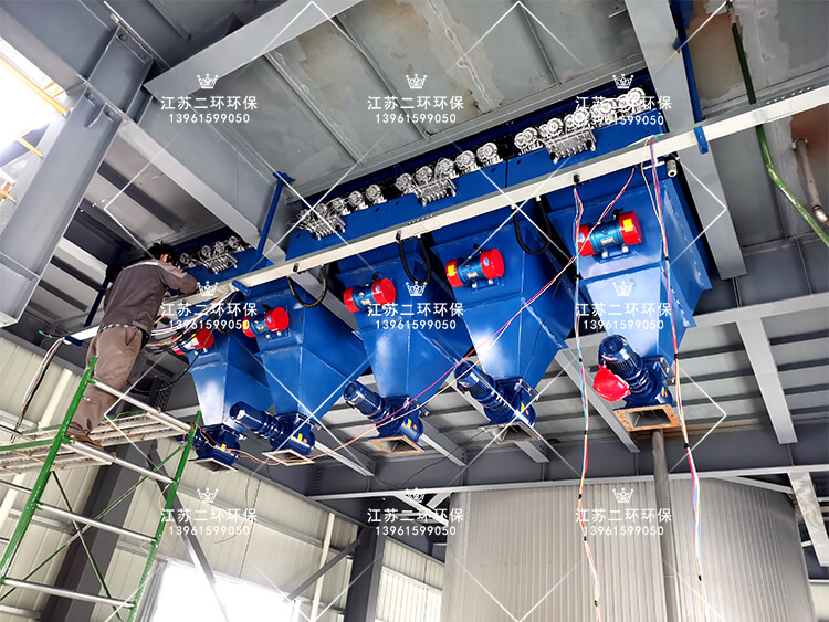 5、設備正麵開門,方便快捷插入布袋籠架,更換維護方便,占地麵積小,通常安裝在室內。
